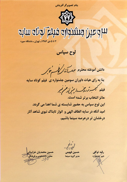• " سومین جشنواره ی فیلم کوتاه سایه "