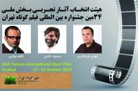 به گزارش ستاد خبری جشنواره فیلم کوتاه تهران، مسعود حاتمی، کاظم ملایی و مهدی فردقادری انتخاب آثار تجربی شرکتکننده در بخش ملی سی و چهارمین جشنواره بین المللی فیلم کوتاه تهران را عهده دار شدند.